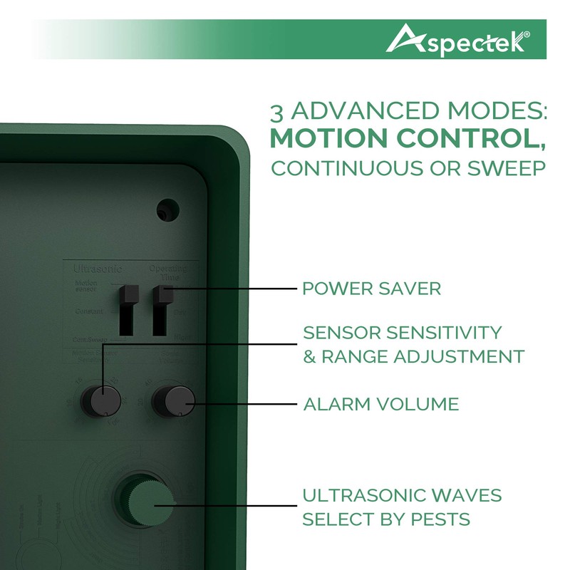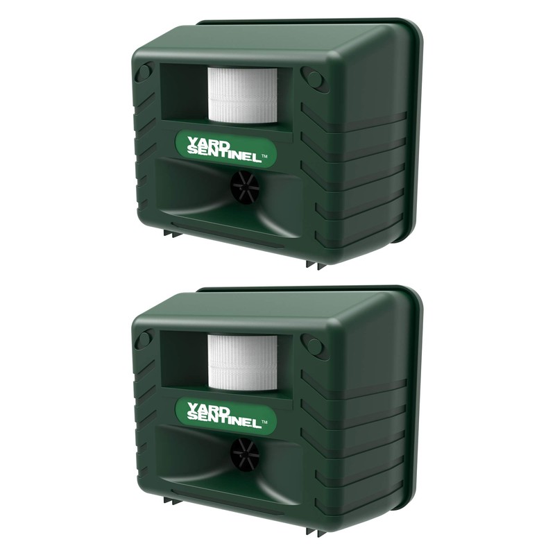 ASPECTEK Includes AC Adapter, Extension Cord Pest Repeller Yard Sentinel 2 Pack Outdoor Ultrasonic Animal Control, Green, Sound Frequency:15 kHz -18 kHz