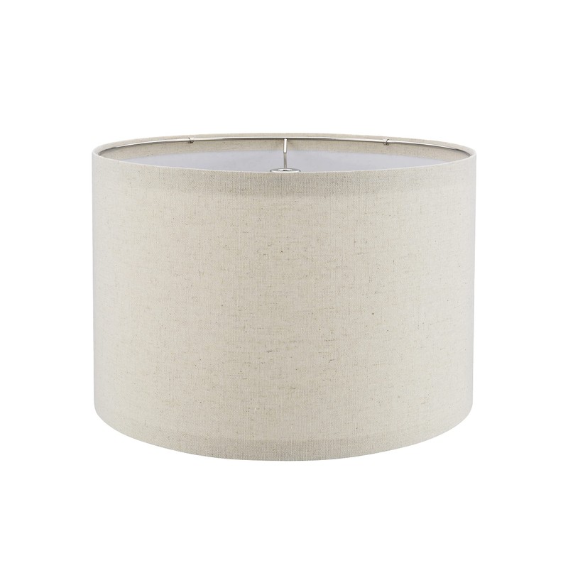 - Shade Material & Color: Linen fabric in Oatmeal| Shade Shape: Drum