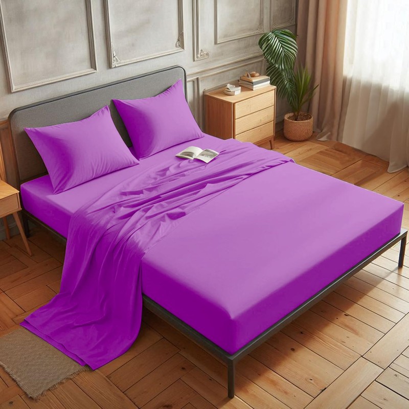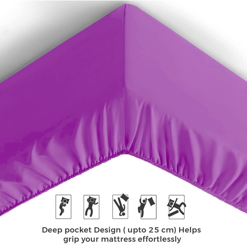 Aspire Homeware Double Fitted Sheet - 25 cm Deep Hotel Quality (Purple) Bed Sheets - Soft & Breathable Fitted Bed Sheets Double - Anti-Wrinkle Easy Care Fitted Sheets