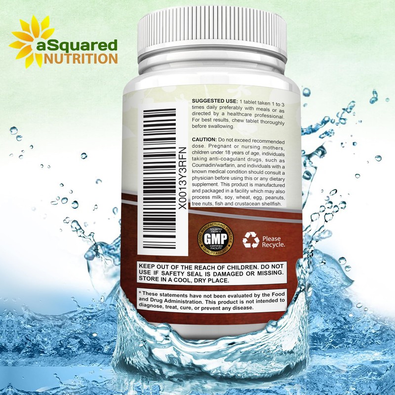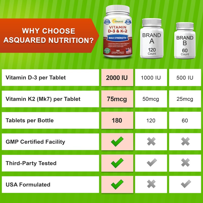 aSquared Nutrition Vitamin D3 with K2 Supplement-180 Chewable Tablets, Max Strength D-3 Cholecalciferol & K-2 MK7 to Support Healthy Bones, Teeth, Heart -Antioxidant D3 & K2 MK-7 Energy Formula Adults