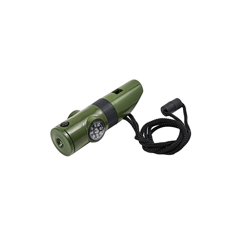 ASR Outdoor 7 in 1 Survival Whistle Multi-Case with LED Flashlight Compass Mirror - Green