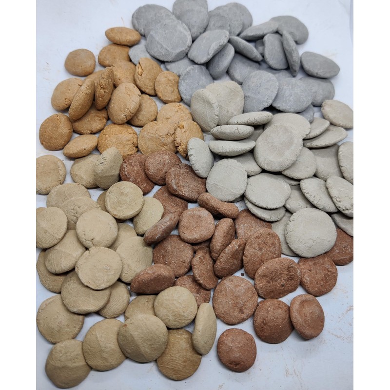 - This Clay coins are made from the powder of Almond, Grey Roasted, Red Khadhi, White Khadhi, White Kaolin, Black Kaolin, Sunset and Sunflower clays.