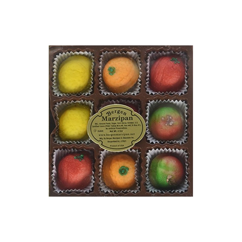 - Box includes 9 pieces of fruit-shaped marzipan