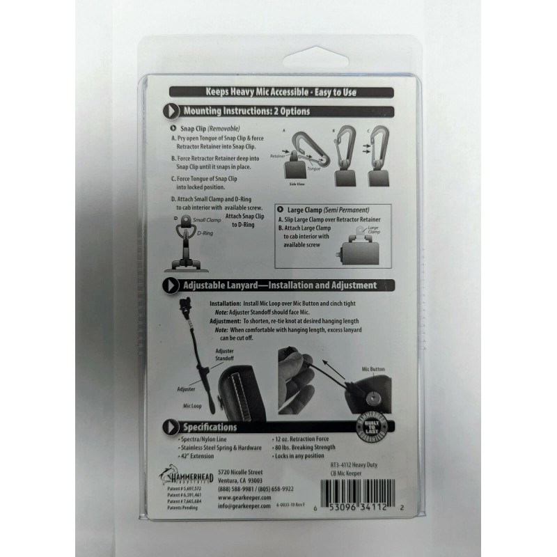 Gear Keeper Heavy Duty Black RT3-4112 42" Retractable CB Radio Microphone Hanger