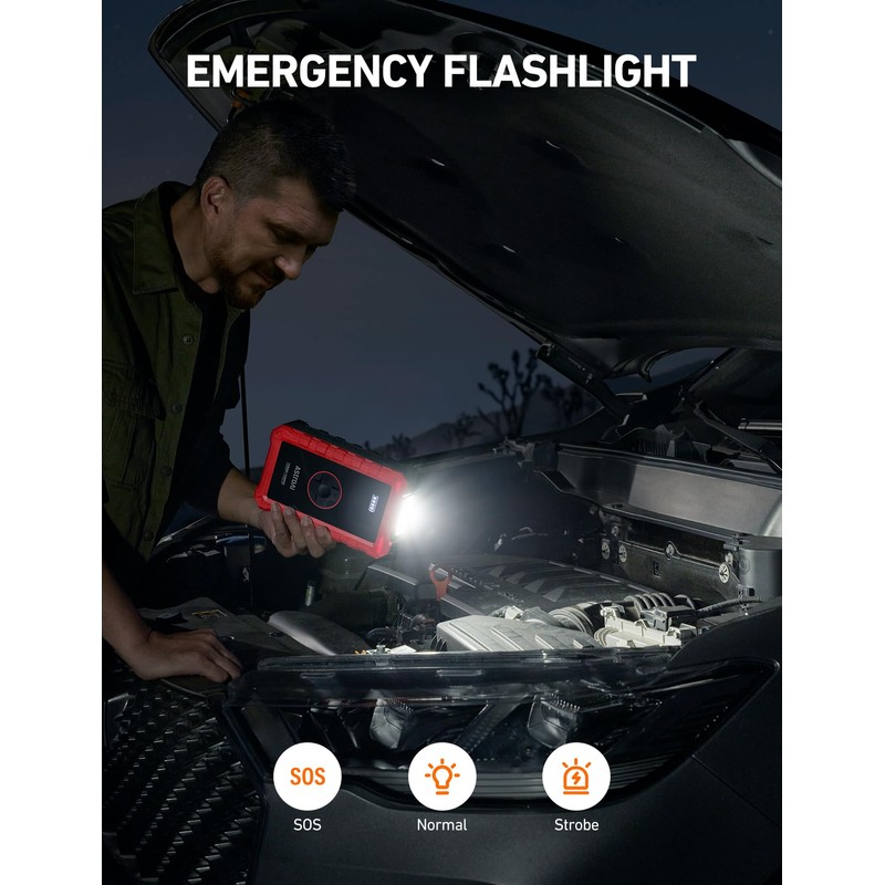 - ALL-IN-ONE PORTABLE JUMP STARTER:Say goodbye to old, bulky jump-start battery packs! The AstroAI Lithium Battery Jump Starter is more lightweight and portable with 6 practical functions to meet all your needs, including car emergency jumpstarting, air compressor, 3 light modes (flashlight, SOS warning, strobe), and a power bank (USB ports for charging mobile devices)