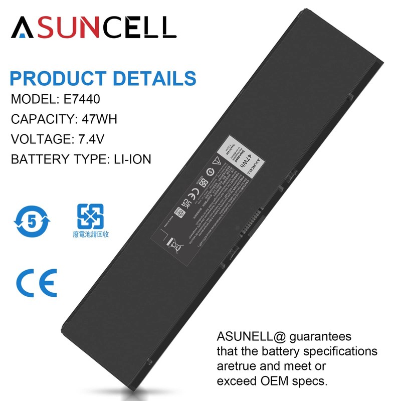 - 🔋【E7440 Battery for Dell】 - Battery type: Li-ion; Voltage: 7.4V, Capacity: 47Wh; Cells: 4-cell. 100% Brand New. Up to 500 recharge cycles over the life of the battery.