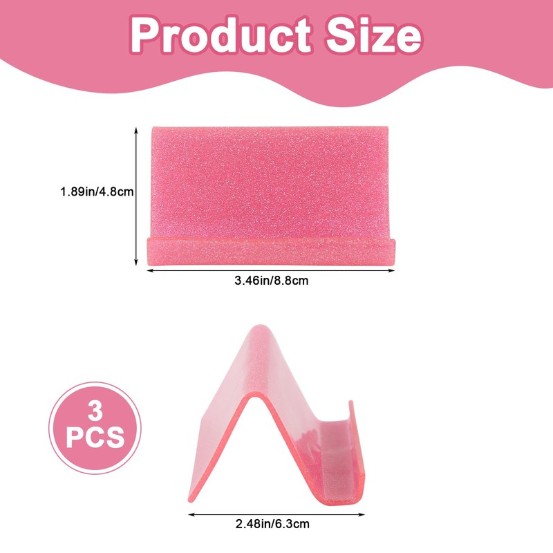 ASUNFO 3 Pcs Business Card Holder for Desk Acrylic Business Card Holders Display for Office Desktop School Pink