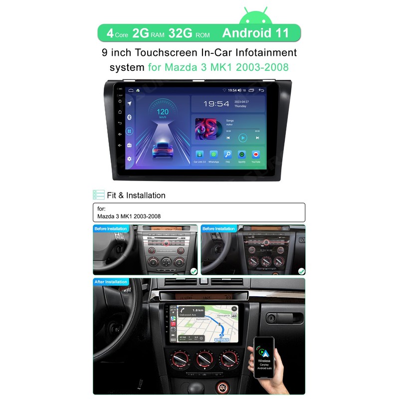 - 【Changeable UI Car Stereo Radio】This stereo radio upgrade for Mazda 3 BK Mazda3 i s 2003 2004 2005 2006 2007,supports Android Launcher,such as AGAMA Car Launcher,you can download the APP from Google Play and customize your own UI Themes.It is troublesome to removal the factroy car radio of some car models,recommended to search a video on YouTube to learning first(if you need backup camera,you can order this one: B0CDFWTW44)