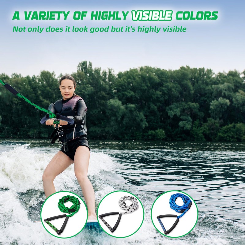 • Floating Design for Easy Retrieval: Equipped with 4 foam floats, the wake surf tow rope remains buoyant and visible on the water surface, preventing sinking and reducing tangling risks