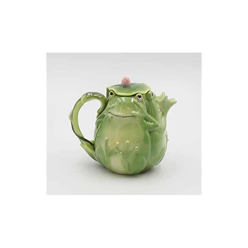 This gorgeous 6.25 inch playful smiling green fairy Frog teapot with Lily pad lid has the finest details and highest quality you will find anywhere! 6.25 inch playful smiling green fairy Frog teapot with Lily pad lid is truly remarkable. 6.25 inch playful smiling green fairy Frog teapot with Lily pad lid details; condition: brand new; item SKU: SS-ATD-61529; dimensions: H: 5.25 x W: 6.25 x d: 4.75 (inches)