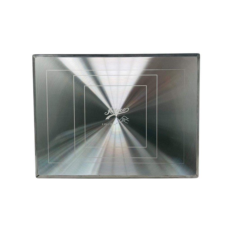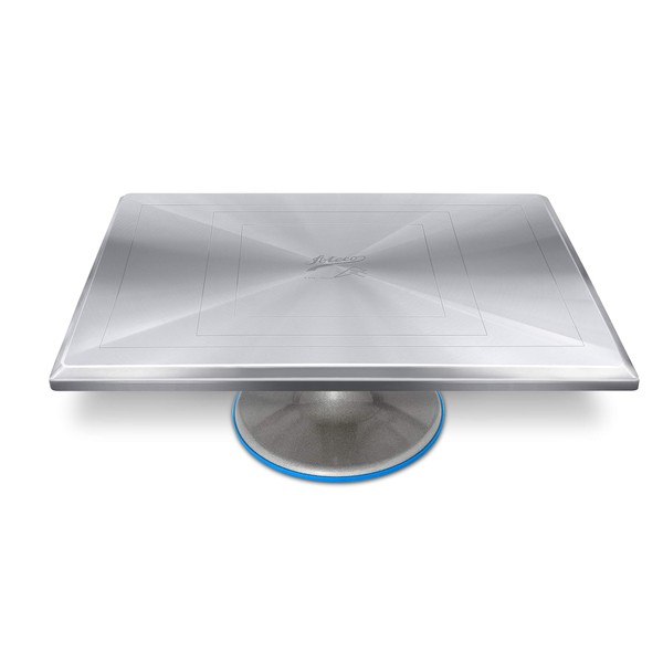 The #614 Rectangular revolving cake stand, by Ateco, is the perfect tool to use when decorating cakes. This aluminum stand features stainless steel ball bearings which provide a smooth rotation for better, more accurate results. A non-slip silicone cap is attached to the base to prevent sliding on counter tops. The turntable measures 12 by 16-inches and stands 4-inch high. To clean, wipe with damp cloth and do not submerge in water when cleaning. At Ateco, four generations of the August Thompson family have provided quality baking and decorating tools to professional pastry chefs and discerning home bakers for over 100 years.