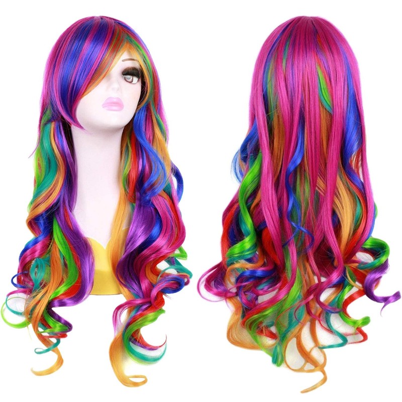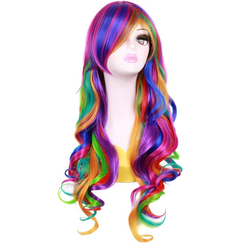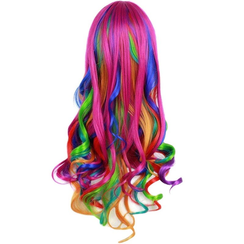 Ateid Women's Wig Curly Rainbow 80 cm + Hair Net