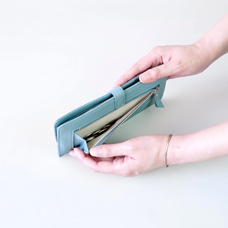 Atelier Nu64-101 Women's Long Wallet, Thin, 0.2 inch (5 mm), Thickness, Smaller, Genuine Leather, Italian Leather, Spring Wallet, Toyooka Wallet, Cashless, Gift, Present, Brand,, green