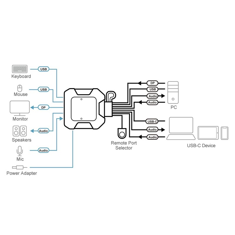 ATEN CS52DP 2-Port USB-C DisplayPort Hybrid Cable KVM Switch