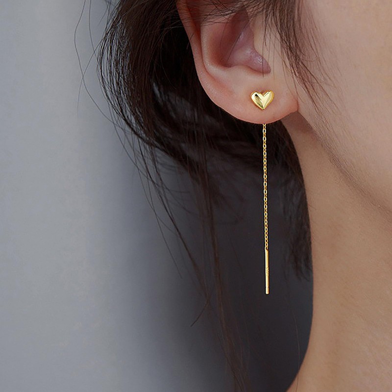 Atentuyi Boho Mini Heart Stud Earrings Gold Threader Earrings Long Chain Earrings Chain Tassel Earrings Chain Dangle Drop Earrings Small Heart Earrings Jewelry for Women and Girls