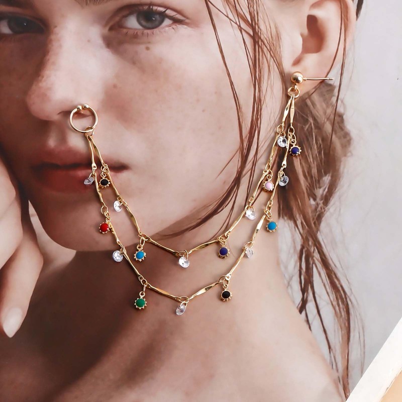 - Nose-ear chain, handmade. Material: high-quality alloy. Colour: gold. Size: as shown in the picture. Nose rings comfortable and beautiful.