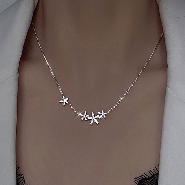 - Rhinestone flower necklace. Necklace length: as shown in the picture. Materials: high-quality alloy. Colour: silver. Style: minimalist. Dainty necklace for women and girls.
