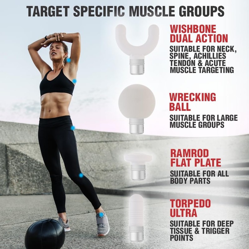 - Provides intense percussive therapy to relieve muscle tension, soreness and stiffness, promoting faster recovery