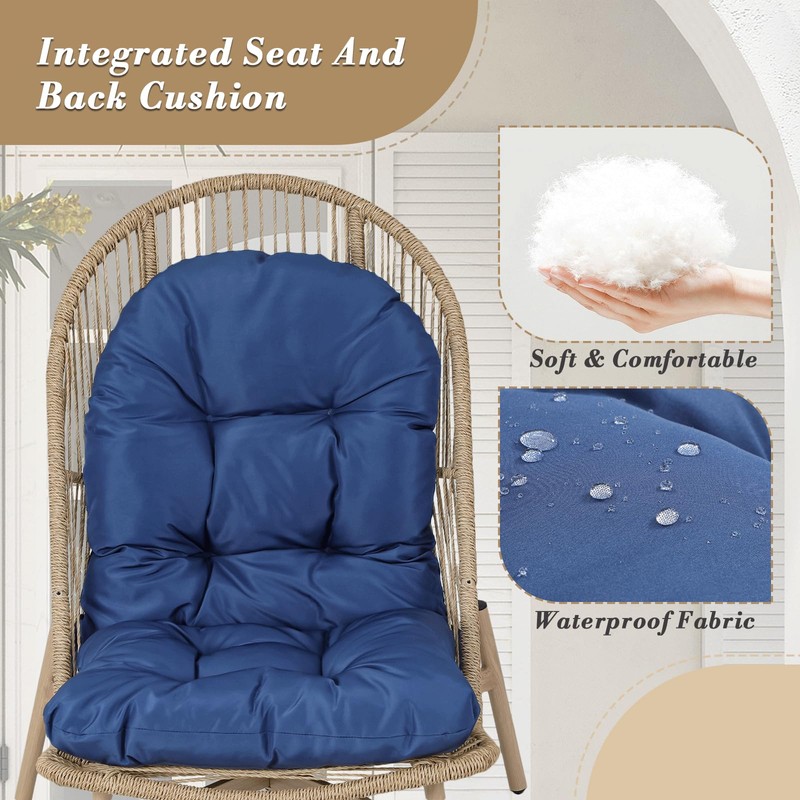 - Integrated Seat and Back Cushion: The patio egg chair features a thick, high-density foam cushion for added comfort and support. Its plush design helps relieve pressure on your neck and lower back, making it more comfortable for long periods of sitting.