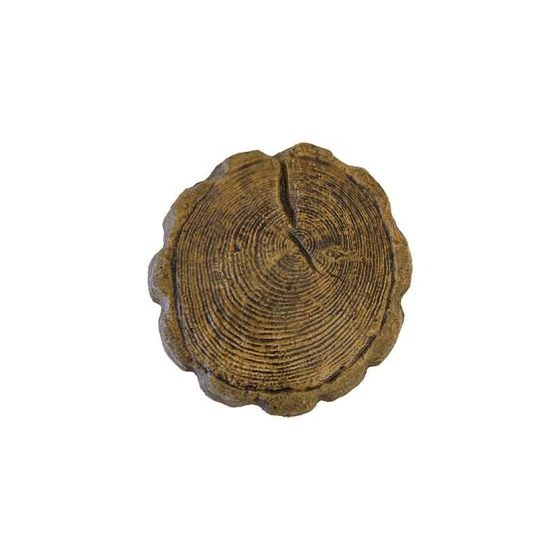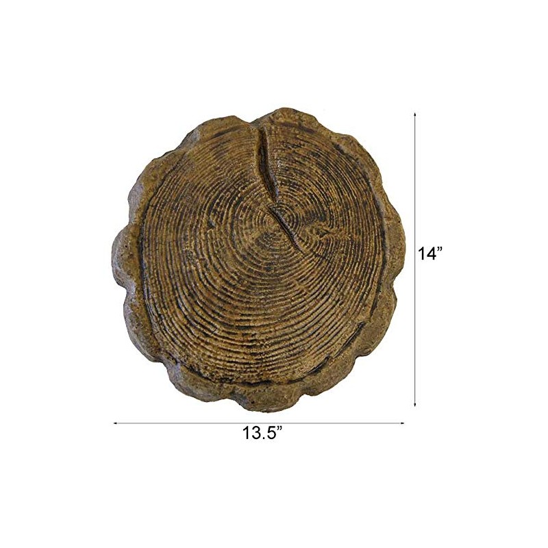 Bring an arboreal motif to any setting in moments with help from this Athens Espresso Small Log Stepping Stone. This robust, concrete accent adds fantastic style to your flowerbed, thanks to its realistic shape and highly detailed façade. A generous, scalloped edge perfectly mimics tree bark, and concentric rings on the face further the effect. A faux crack in the center and on the edge of the item completes the tree slice look, and the brown tone with black and yellow hints adds realism. This generous stone is simple to place on a level surface in your landscaping, helping direct foot traffic away from your flowers. Its 14" overall width accommodates most human foot sizes, while the concrete construction provides stability. The unit withstands exposure to the elements through the warm months, and can be brought indoors for display in the cold months for added longevity. Showcase the importance of trees in your yard with this Espresso Small Log Stepping Stone. Each item is hand cast with an artisan finish and each item may vary slightly in terms of color and texture. Due to the inherent nature of stonecasting, small scuff marks, scratches, and chips are to be expected and add to each item's unique character. Dimensions: 13.5"L x 14"W x 1.75"H Mounting: place on level surface Construction: concrete