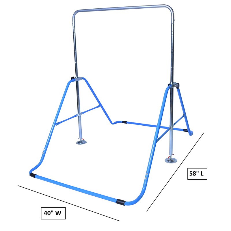 Athletic Bar Jungle Gym Gymnastics Kip Bar Deluxe Swing Set + 2x6 Gymnastics Mat, Playground Playset Horizontal Gymnastics Monkey Bars Expandable Junior Training Bar Foldable Blue