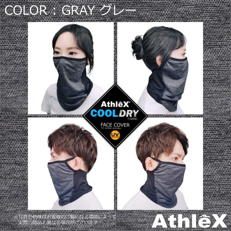 Athletics Face Cover, Breathable, Smooth Mesh, Mask, Running, Gym, Repeatedly, Washable, UV Protection, Neck Gaiter, Unisex, gray