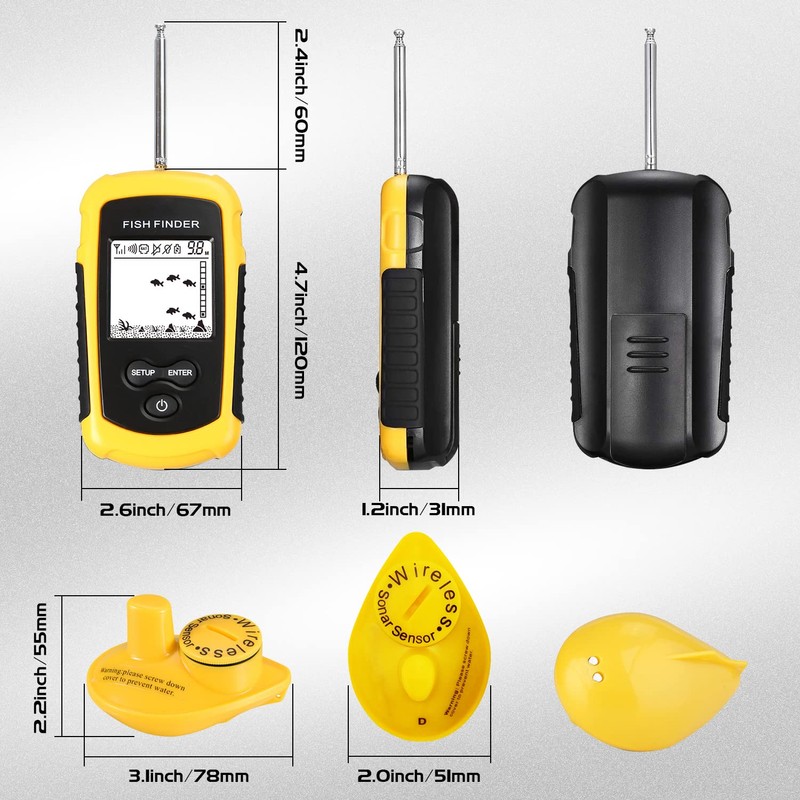 - Wireless portable fish finder・water depth finder is designed to help anglers find fishing points and measure water depth for inshore fishing and offshore fishing. With the castable wireless sonar transducer, you can enjoy the funny of using fish finder at anywhere, no matter you are a boat, kayak angler, or a land angler fish from the shore.