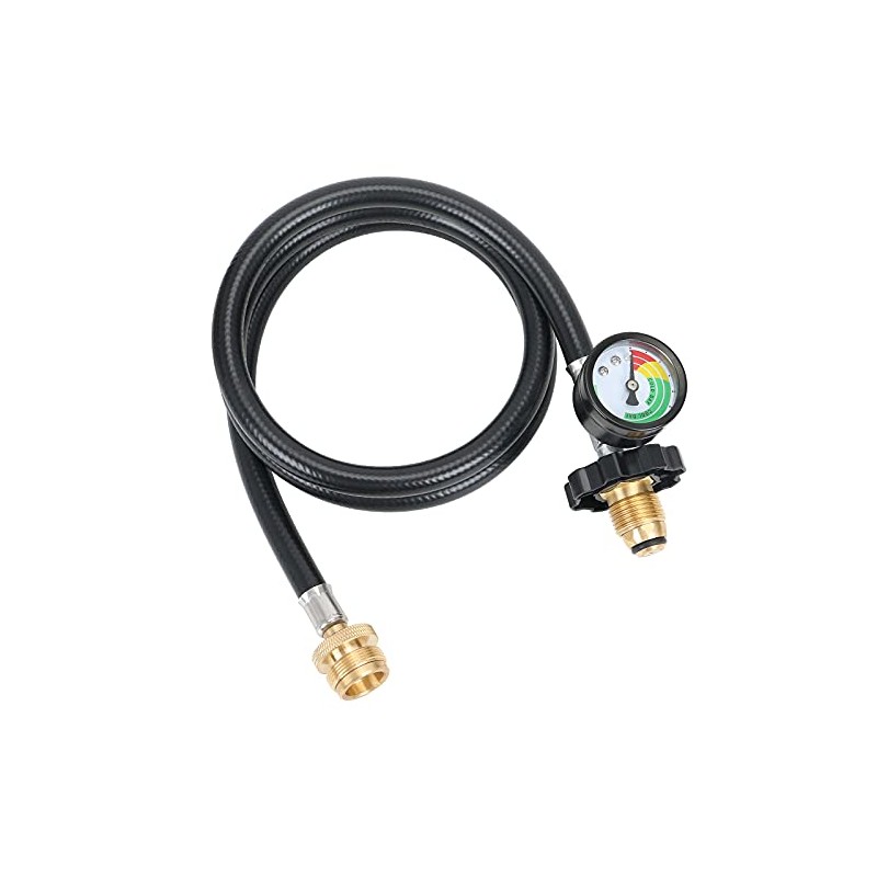 - HIGH QUALITY - The adaptor is made of brass and comes with a long-lasting rubber hose. And the durable rubber is built to withstand various levels of temperature without cracking or bursting. This propane tank adapter hose ensures long term usage with consistent output and efficiency.