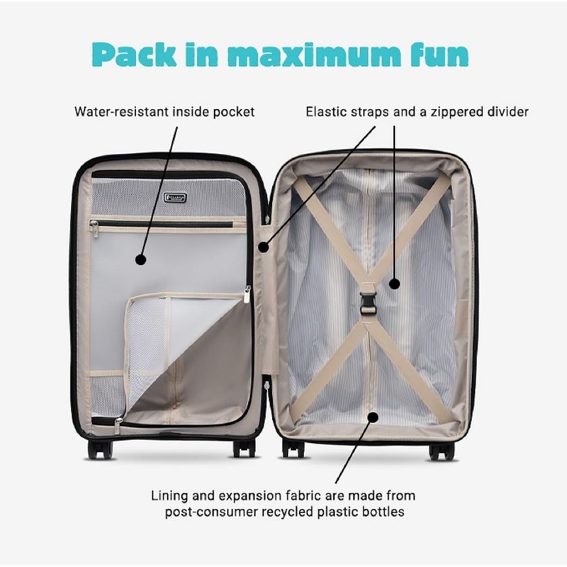 - o Super light polypropylene shell is kid-proof and airline-proof, designed to help prevent punctures or cracks