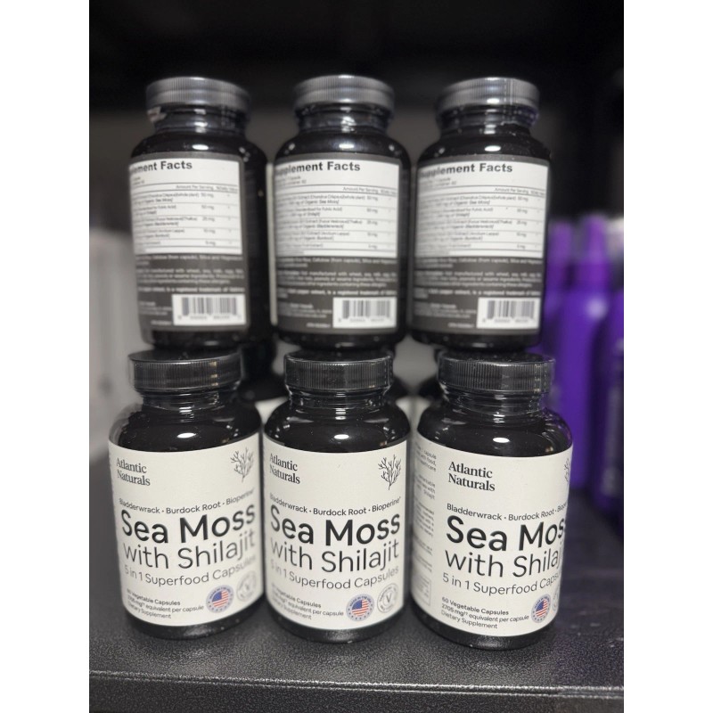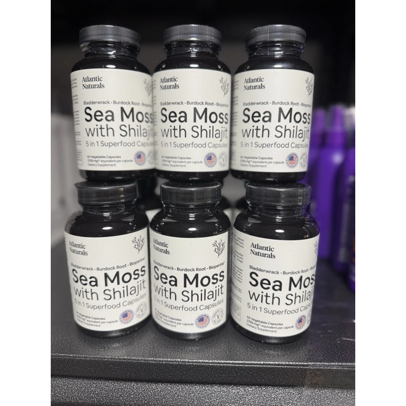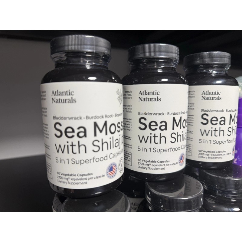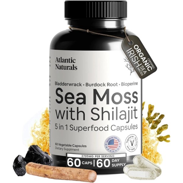 - 5-IN-1 ORGANIC SEAMOSS SUPERFOOD SUPPLEMENT: Enjoy the combined benefits of Irish Seamoss, Shilajit, Bladderwrack, Burdock Root, and Black Pepper in one capsule. Atlantic Naturals introduces a revolutionary blend crafted for comprehensive health enhancement.