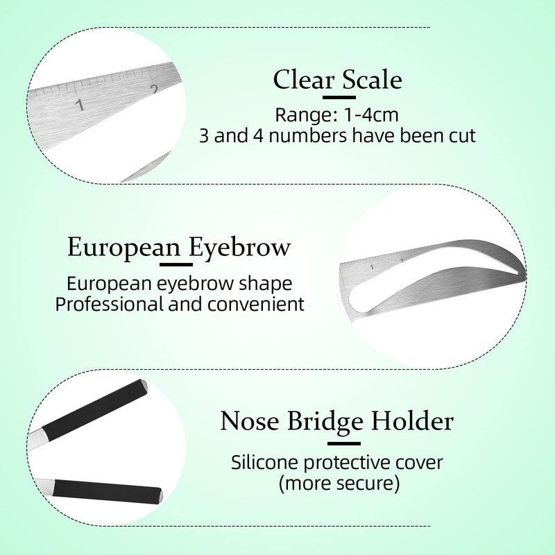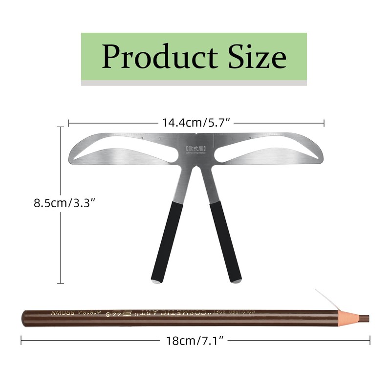 - Package includes: 2 x stainless steel eyebrow ruler and 1 x brown eyebrow pencil. You can quickly locate the shape of your eyebrows and draw the shape to colour them, the eyebrow gauge is perfect for measuring eyebrows with tattoo microblading.