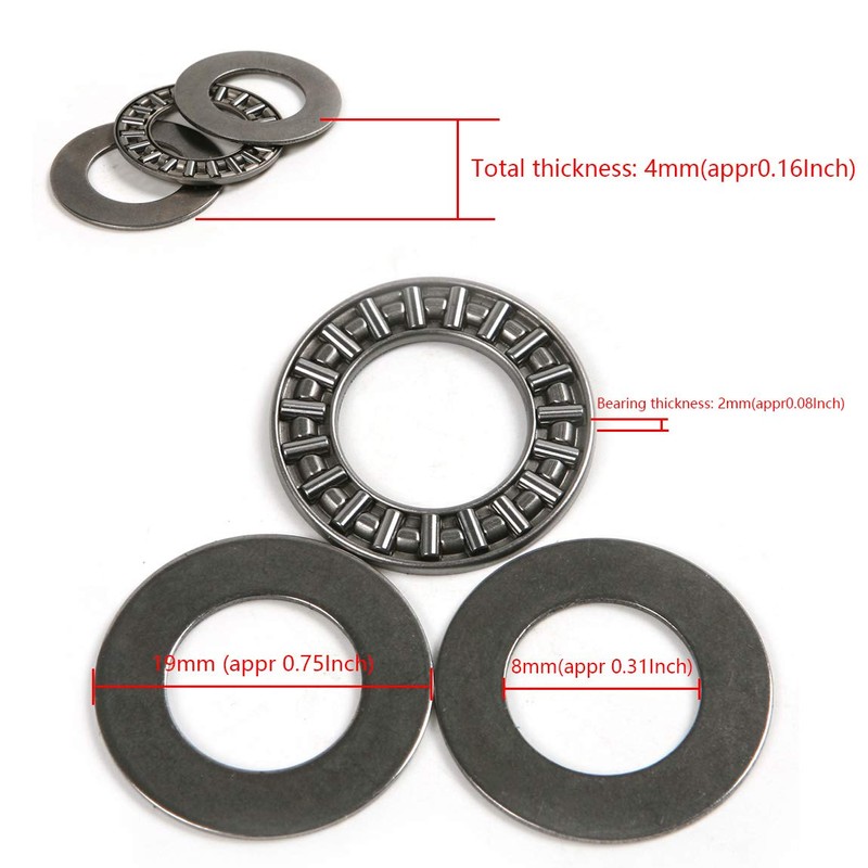 ATOPLEE AXK0819+2AS Thrust Needle Roller Bearings 1pc Cage Needle + 2pcs Washers [ 8x19mm, 10pcs]