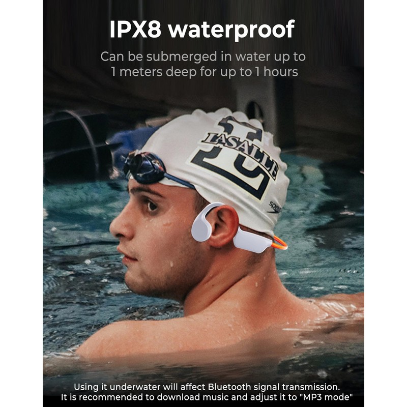 - 【Bluetooth/MP3 Double Mode Bone Headphones Wireless】Atopskin waterproof earbuds for swimming has built-in 32GB memory. Waterproof mp3 player for swimming can be used as stand-alone MP3 players in deep water environments. No connected devices required and no distance restrictions. Atopskin swim headphones Bluetooth cannot receive Bluetooth signals underwater. Therefore, you can download 8,000 songs and use it as a portable underwater MP3 player.
