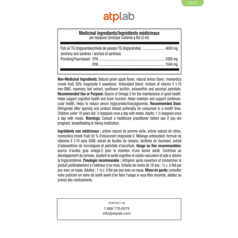 ATP Lab Omega 3 TG liquid (200ml), Green Apple