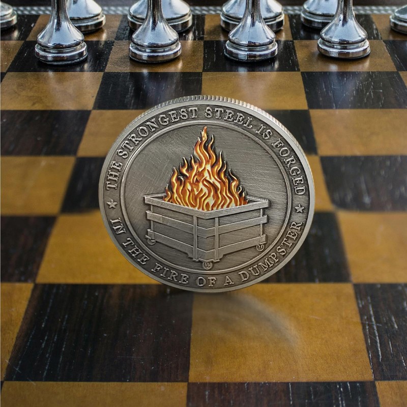AtSKnSK Dumpster Fire Challenge Coin - Funny Dumpster Fire Desk Accessories Challenge Coin Novelty Coins Collector's Coins Pocket Token A Chip Challenge Locket Gifts for Men Wome