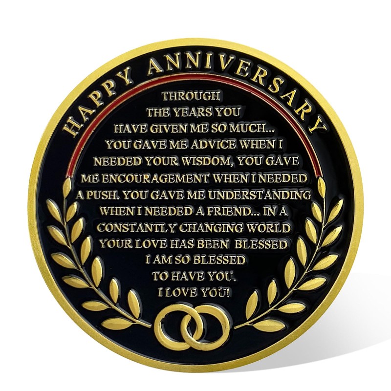 • 💕Bedeutungsvolles Design: Auf der einen Seite dieses Jubiläums Gedenkzeichens ist eine Szene eines Paares von seinem jugendlichen Aufschwung bis zu seiner unerschütterlichen Unterstützung und Liebe im Alter eingraviert, zusammen mit dem Text „HAPPY ANNIVERSARY“, auf der anderen Seite ist die romantische Inschrift eingraviert .