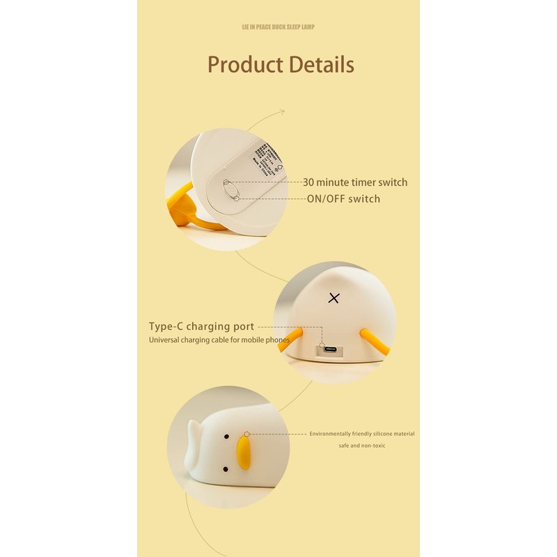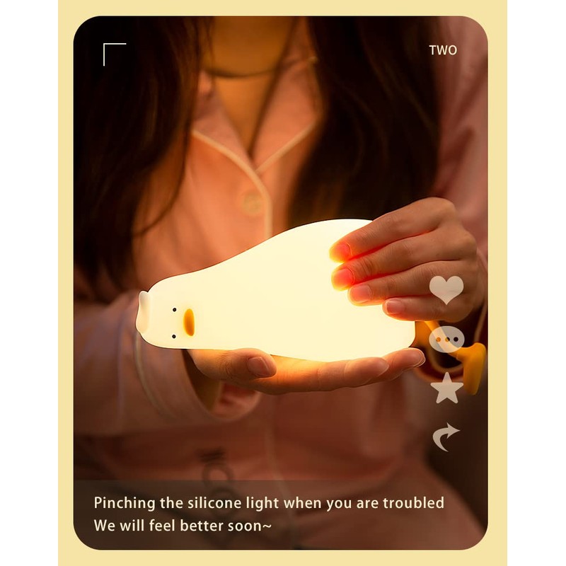 - [BPA-free] Duck Night Light is made of safe and non-toxic food-grade silicone. As a touch-controlled baby night light that comes into contact with the body every day, we use the highest grade food-grade silicone that is BPA-free. Soft silicone can be kneaded freely and springs back quickly. The silicone exterior is thickened to prevent easy breakage or damage. It can be your stress reliever instantly. It is a baby night light and a stress relief toy.