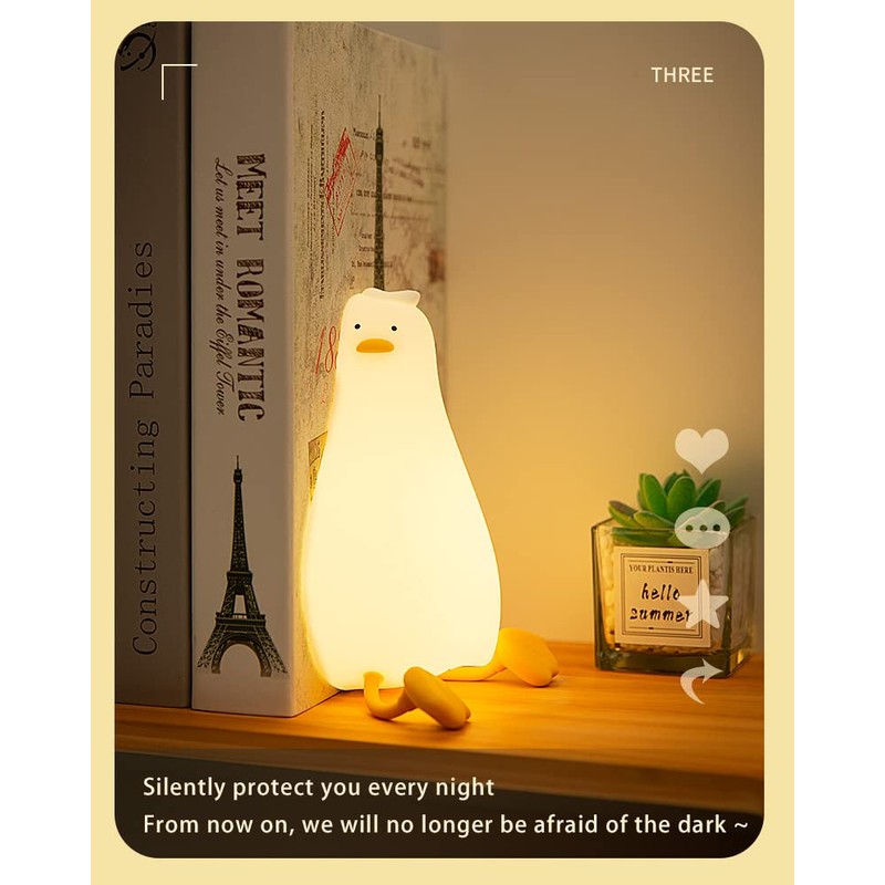 - [Cute design] The super cute Duck night light is children's favorite animal. Its soft light is perfect for creating a warm atmosphere and adding a touch of cuteness and vitality to the room. This cute and practical lamp is the best gift for children, friends and family on occasions such as birthdays, Christmas and other holidays.