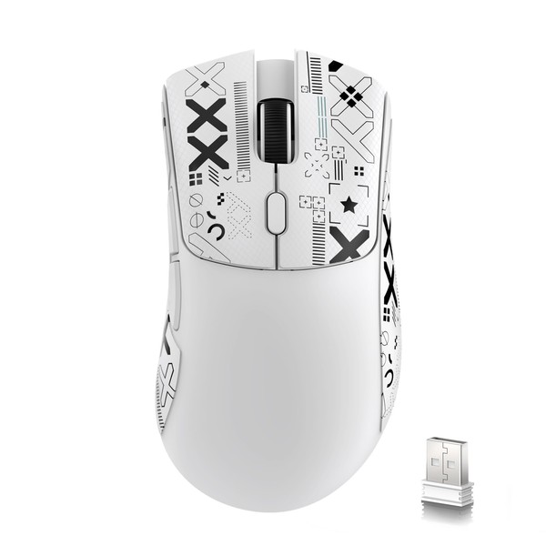 ATTACK SHARK R1 Wireless Gaming Mouse,Tri-Mode Connection (2.4G/Wired/BT5.2),55g Lightweight,18K DPI Optical Sensor,HUYU 20 Million Key Life,Ergonomic Design,for PC/Laptop/Win/Mac(White+Sticker)