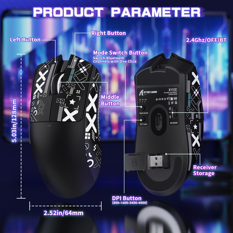 - 59g Ultra-Lightweight Design: X11SE lightweight gaming mice is different from attack shark x11. It eliminates the charging base, reducing the weight of the mouse to 59g, which is lighter than X11. It is suitable for players who pursue lightweight design. Even if used for a long time, it can be easily controlled and reduce fatigue.