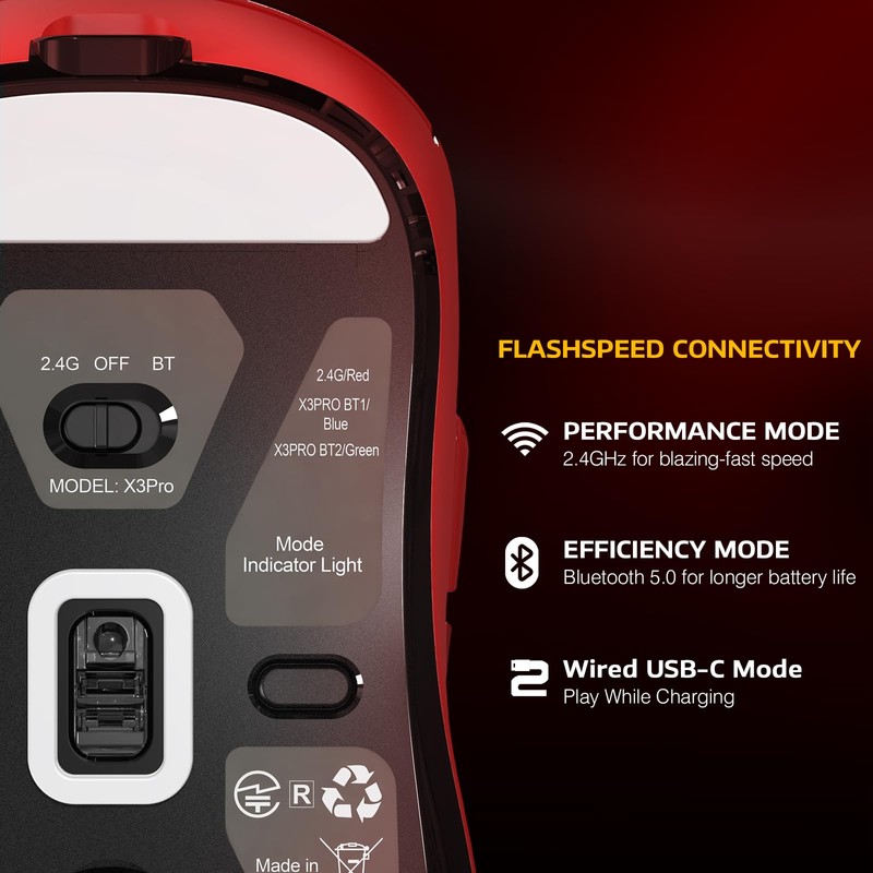 - 【4K/8K Wireless Gaming Mouse】The X3PRO Wireless Gaming Mouse equipped with wireless 4K polling and wired 8K polling ,the polling rate of can be increased to 4000Hz/8000Hz,sends a signal to the computer every 0.25/0.125 ms,4/8 times faster than other gaming mice,which is the best-in-class mouse performance and also the perfect mice choice for PC gamers seeking the pinnacle of precision and responsiveness.