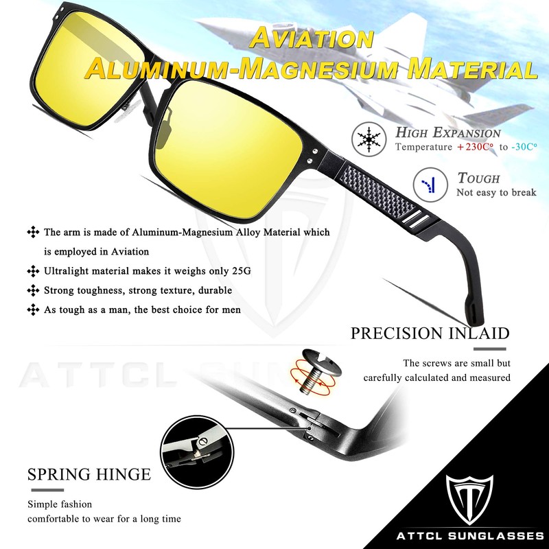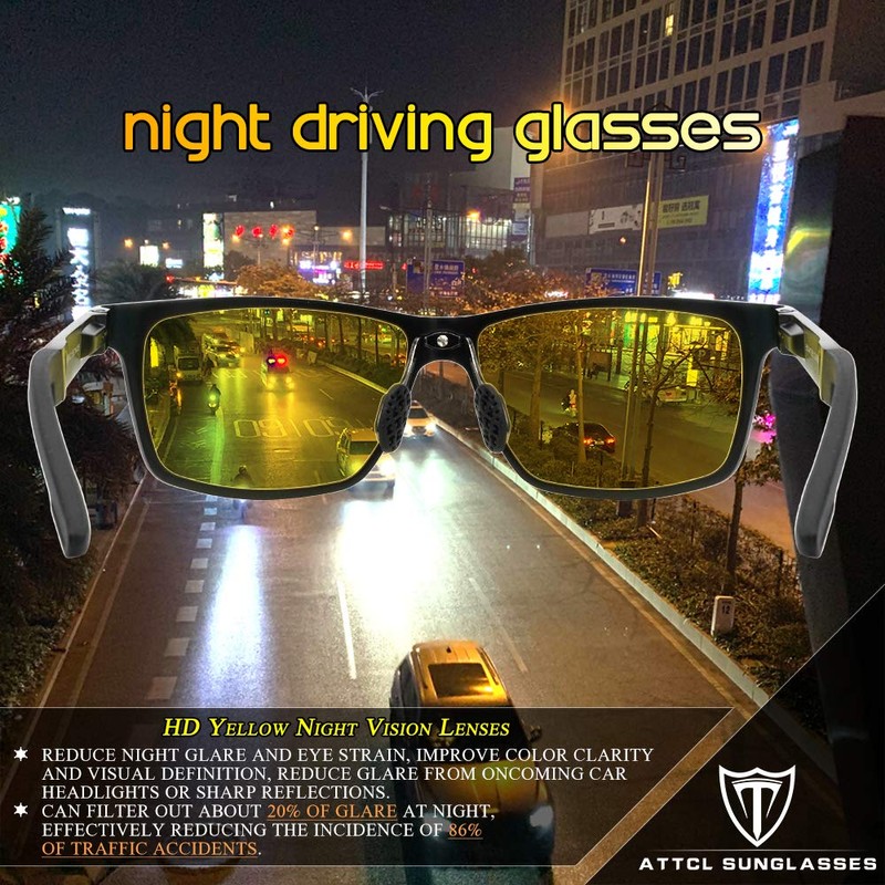 • Dedicated Night Driving Goggles--ATTCL Anti-Glare Night Driving Glasses are designed for men to travel safely at night, sports, outdoors or cloudy, rainy, foggy, to make driving safer. HD yellow night vision lenses can filter out about 20% of glare at night, effectively reducing the incidence of 86% of traffic accidents.