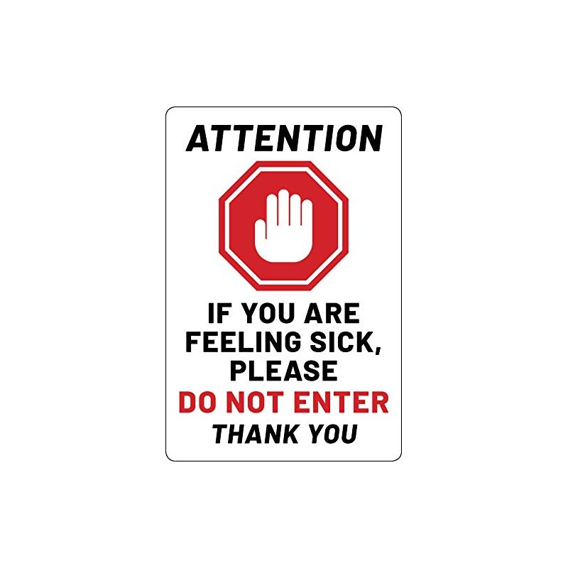 - These highly visible adhesive stickers read "Attention - If You Are Feeling Sick, Please Do Not Enter - Thank You"