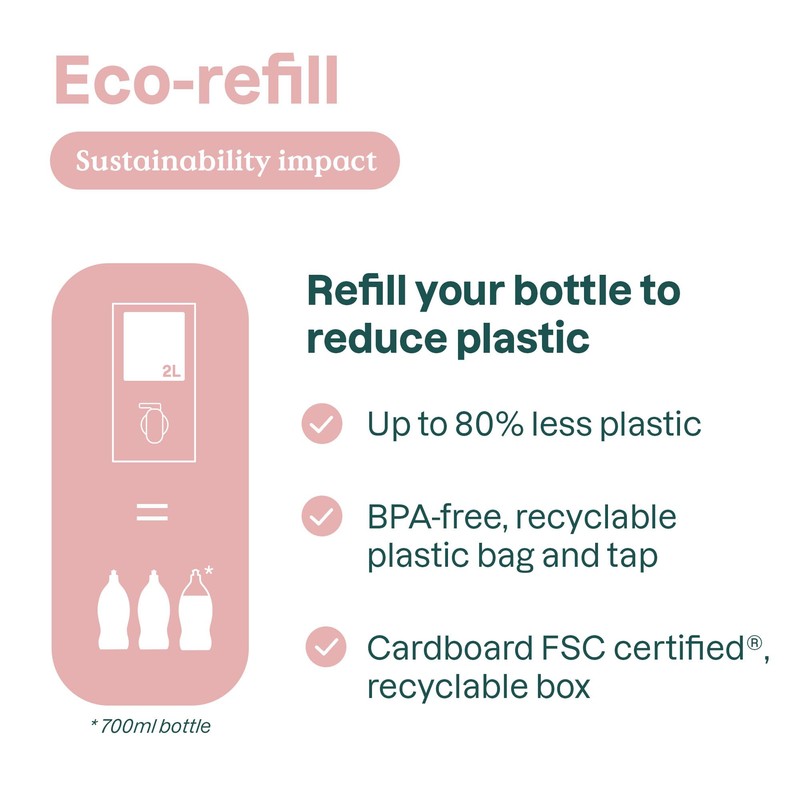 - ECO-FRIENDLY PACKAGING: Eco-refill format that's easy to carry and use at home