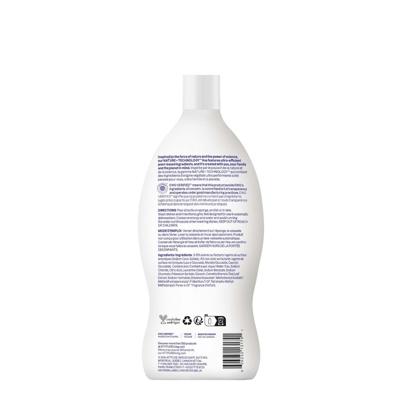 ATTITUDE dishwashing liquid with fruity and tangy green apple & basil aroma is your new home essential. Its strong degreasing power with foaming action eliminates grease and residue. Let its fruity and tangy aromas transport you to an orchard with strong herbaceous notes for a fresh and unique experience. This dishwashing liquid comes in a bottle made from HDPE #2 plasticthe easiest plastic to recycleand can be reused again and again thanks to our innovative eco-refills. Its vegan and cruelty-free formula leaves your dishes clean and sparkling every day.
