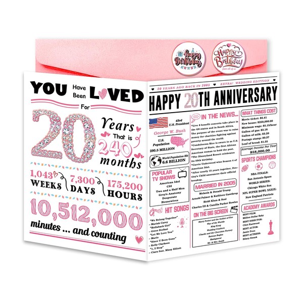 ATTLVV Jumbo 20th Anniversary Cards for Him Her,Happy 20th Wedding Anniversary Card Gifts for Wife Husband,Sweet 20 Year Anniversary Decorations for Women Men