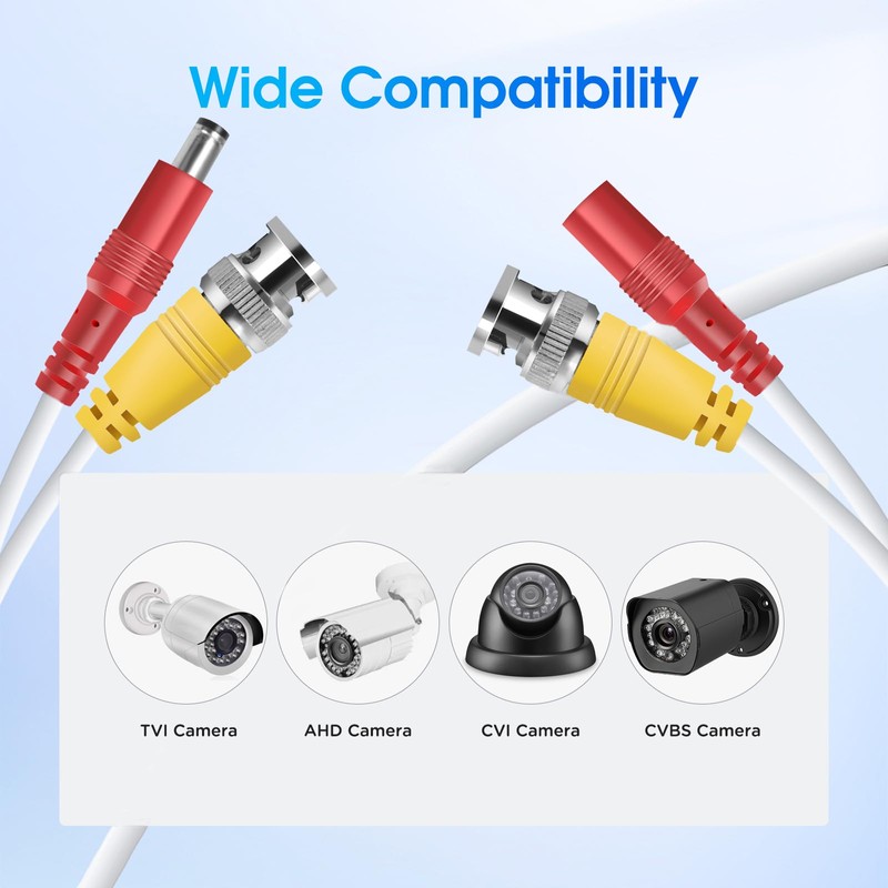 - 【Strong Compatibility】BNC Video and Power Security Camera Cable compatible with all CCTV surveillance DVR camera systems and support 720P/960H/960P/1080PN/1080P,3MP/4MP/5MP, AHD/HD-CVI/HD-TVI/HD-SDI.