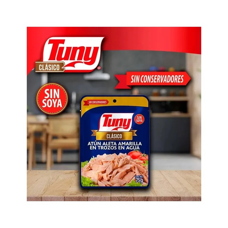 Atun En Trozos En Agua Tuny Clasico Paquete Con 8 Sobres De 75 Gr C/u