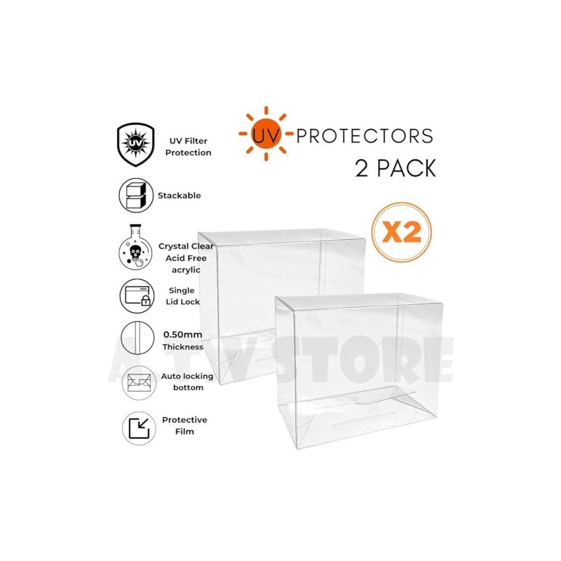 ATV Store Premium Pop Vinyl Display Box Cases DOUBLE SET Protectors UV 0.50mm Thickness (X2 IN A PACK) FIGURE NOT INCLUDED