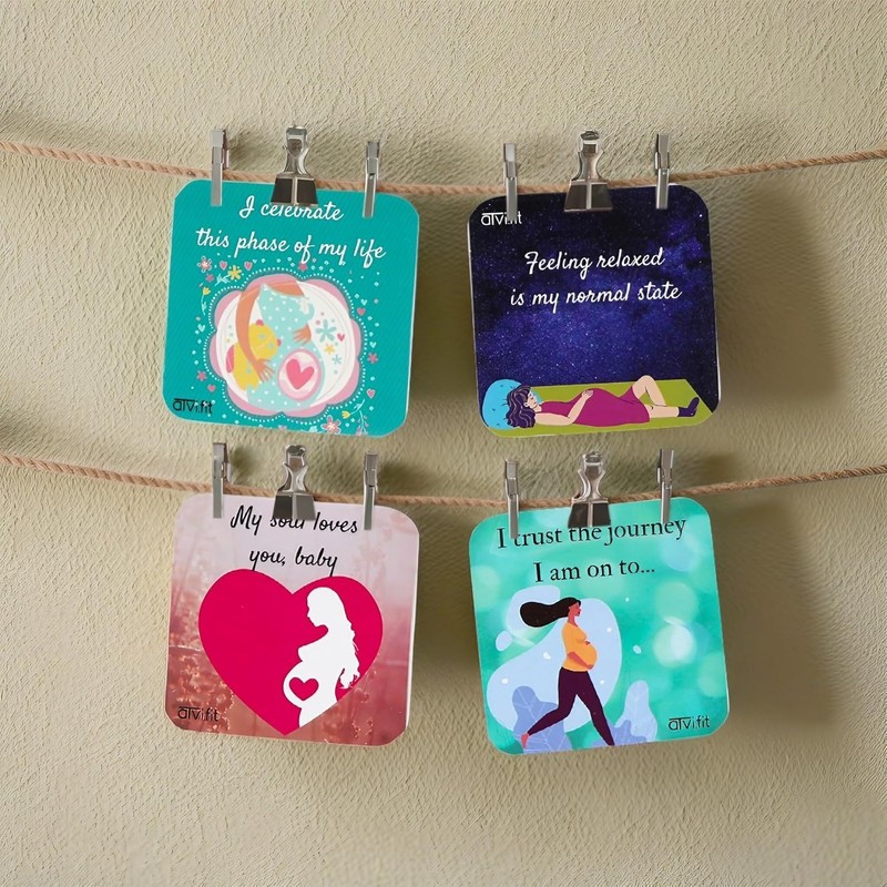 Atvi.fit Positive Affirmation cards Combo Set for Pregnant Women,Pregnancy gifting ideas, baby shower gifts, meditation tool during pregnancy and deck for Post-partum (2 Decks x31 cards) With a Wooden easel table stand for Daily use and Gifting Cards